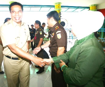 Drs.H.Jamaluddin Asisten III berjabatan tangan dengan Ny.Diana Wati Zainul Arifin