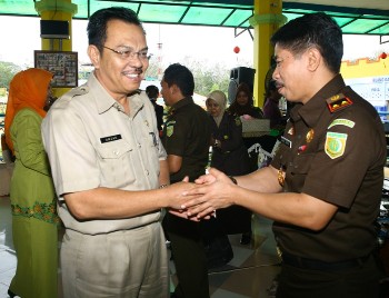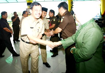 H.Amsar Sekda Siak berjabatan tangan dengan Kajari baru