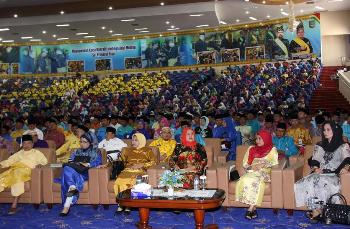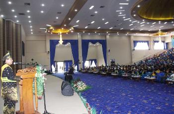 Para tamu undangan, memadati gedung daerah, tempat pembukaan Muskerda LAM Riau di Pasir Pengaraian.