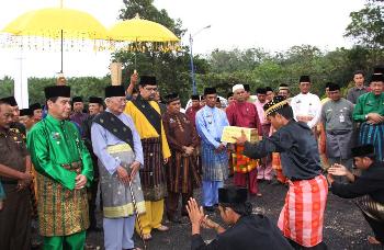 Sebelumnya, rombongan Bupati Achmad, Wabup Hafith Syukri, Ketua Umum LAMR Tenas Effendi dan Ketua Dewan Pimpinan Harian LAMR Al Azhar, diarak dari Kantor LAMR perwakilan Rohul, diiringi Dzikir dan Brudah. (End/S.Hrp)