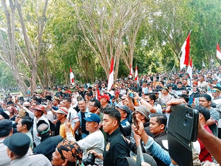 Orasi dihadiri oleh berbagai elemen masyarakat, Ormas LMB-Nusantara, FKPPI, LSM, Paguyuban berbagai Suku yang ada di kabupaten Siak, Senin, 28 April 2025.