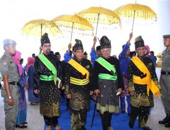 Sebelumnya, rombongan Bupati Achmad, Wabup Hafith Syukri, Ketua Umum LAMR Tenas Effendi dan Ketua Dewan Pimpinan Harian LAMR Al Azhar, diarak dari Kantor LAMR perwakilan Rohul, diiringi Dzikir dan Brudah. (End/S.Hrp)