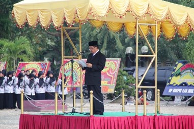 | Wakil Bupati Inhil, Rosman Malomo saat memimpin upacara Hardiknas |
